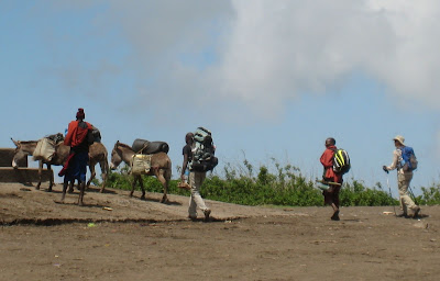 In addition to our guide, we had a member of the Maasai tribe join us. He was in charge of the donkeys. Because he moved much faster than Lukasz, I ended up spending most of the trek with him and the donkeys than with Lukasz and our guide. They said that there were no lions or cheetahs in these parts, but I still would have been more comfortable if our guide or Maasai warrior had a spear with them. At least he had a large knife strapped to his side, which was something. :-)